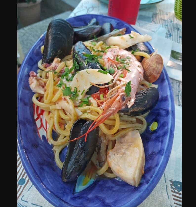 Serviamo piatti tradizionali a base di pesce, Pizza a pranzo e cena.